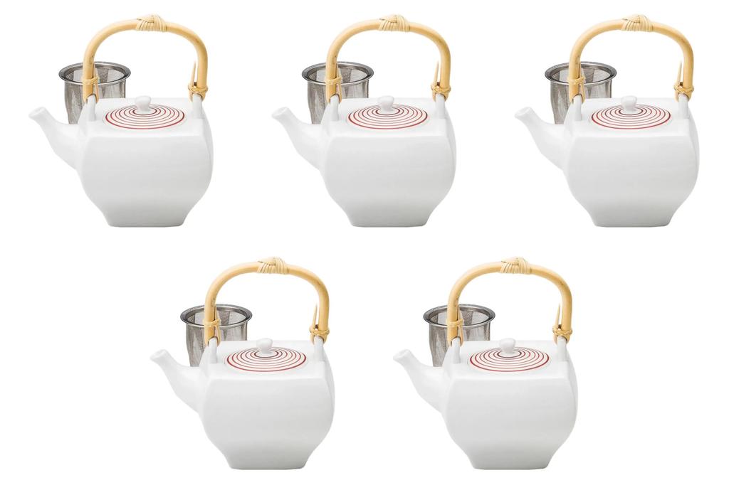 Set von 5 roten quadratischen Steingut-Teekannen Korb Steingut-Teekannenset Setomonohonpo Koma-suji (mit Sieb) [14×11×10.3cm (550cc)]
