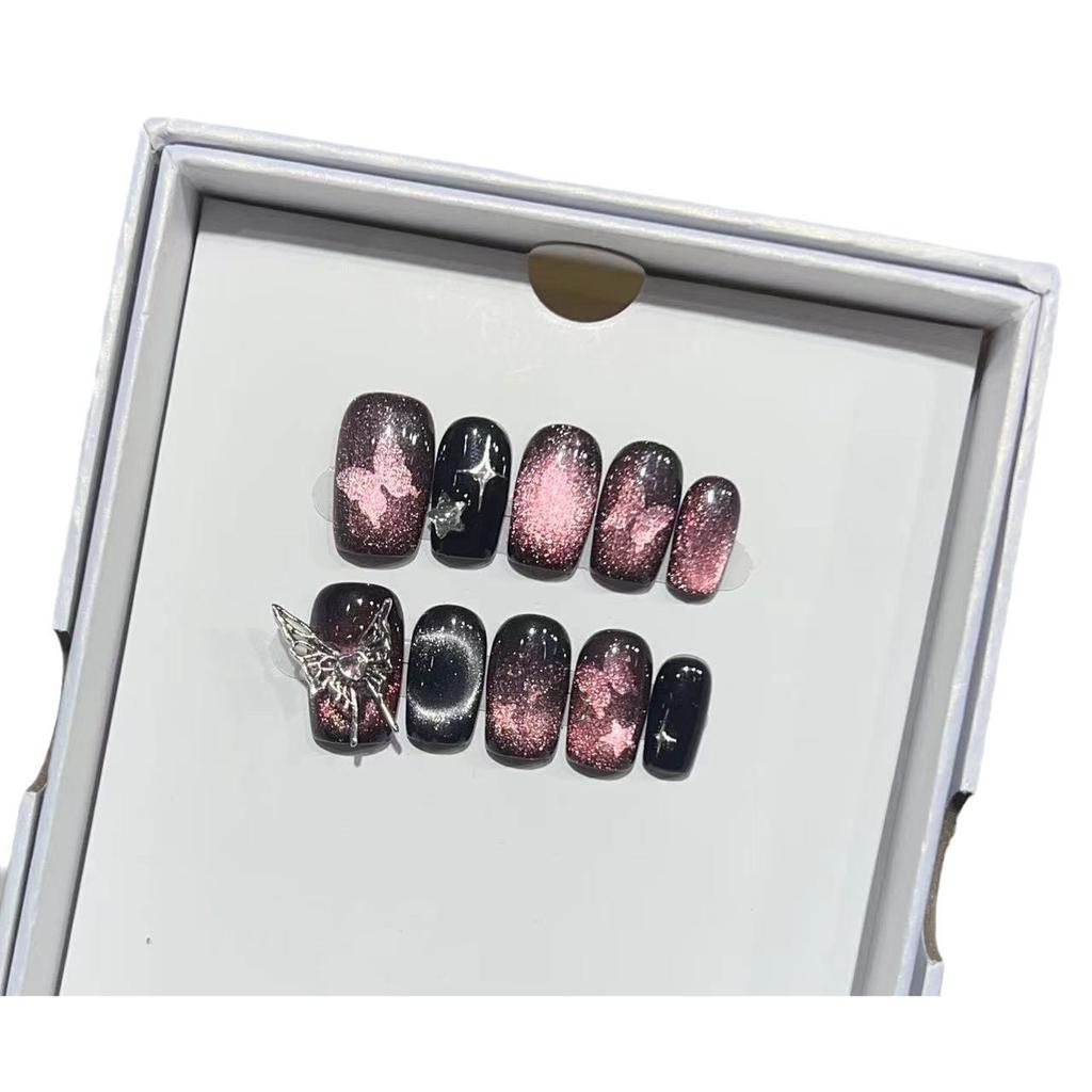 Tägliche Kurze Trage Rüstung Handgefertigt High-End Sternenhimmel Katzenauge Metall Großer Schmetterling Abnehmbare Falsche Nagelstücke