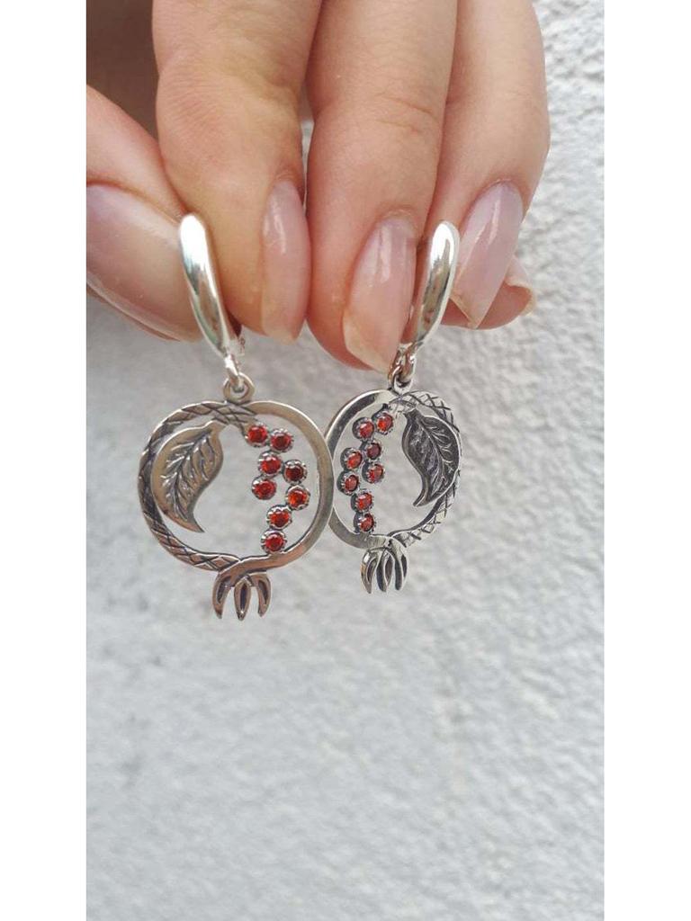 He Cheng Retro Granatapfel Imitationssilber Ohrringe: Europäischer und amerikanischer Stil