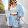 2024 Damen Casual Kurzarm- und Shorts-Set - Unifarben, Europäischer & Amerikanischer Stil