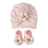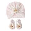 Baby Mädchen Turban Hut und Socken Atmungsaktiv Neugeborene Blumen Kopfwickel Mütze für Säugling Kleinkind Foto-Requisiten