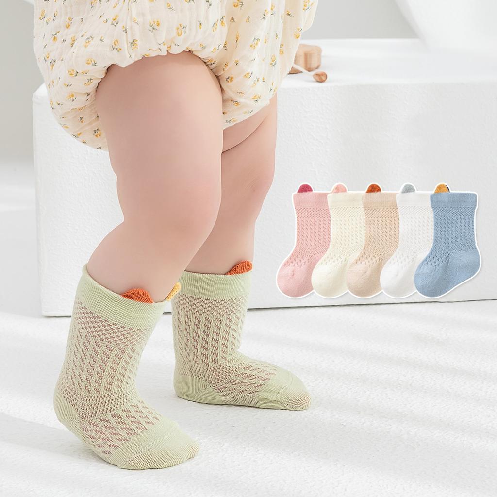 Babysocken 3 Paar/Packung Sommer dünn Baby Mädchen Junge mittellang Anti-Mücken Baumwollnetz Socken ohne Knochen locker dick Kindersocken 0-3J