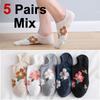 5/10 Pairs Women Flower Pattern Invisible Socks Spring Summer Sweat Absorbing Breathable Soft Comfortable Knitted Casual Socks