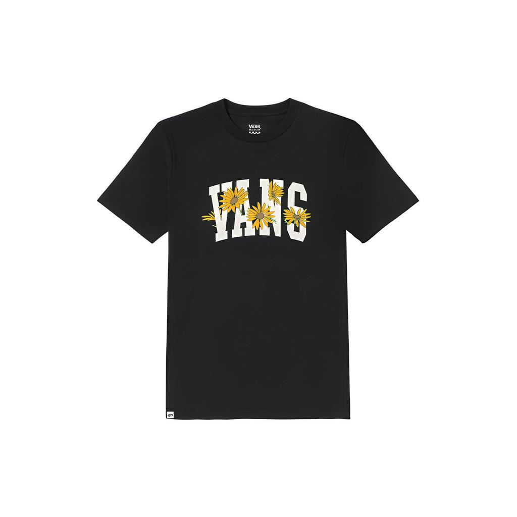 Vans Letter Daisy Print Crew Neck Short Sleeve T-Shirt Women tops Black VN0008Z5BLK