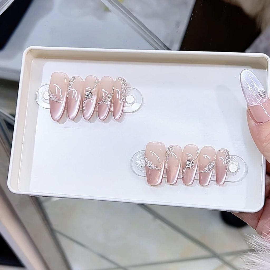 Handgewebte Rüstung Neue Rosa Hühnerohren im Frühling und Sommer Kühl und Sommer Eis-Transparentes Katzenaugen-Nageldesign