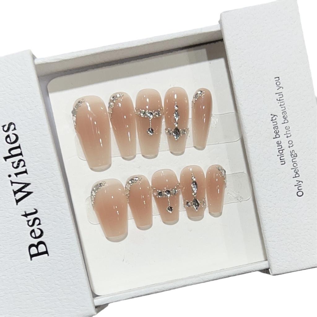 Herbst und Winter Tragbare Nägel Kurz Täglich Nude Rouge Gebrochener Diamant Nagelkunst Reines Temperament Stahlkugel Kette Nagelpflaster