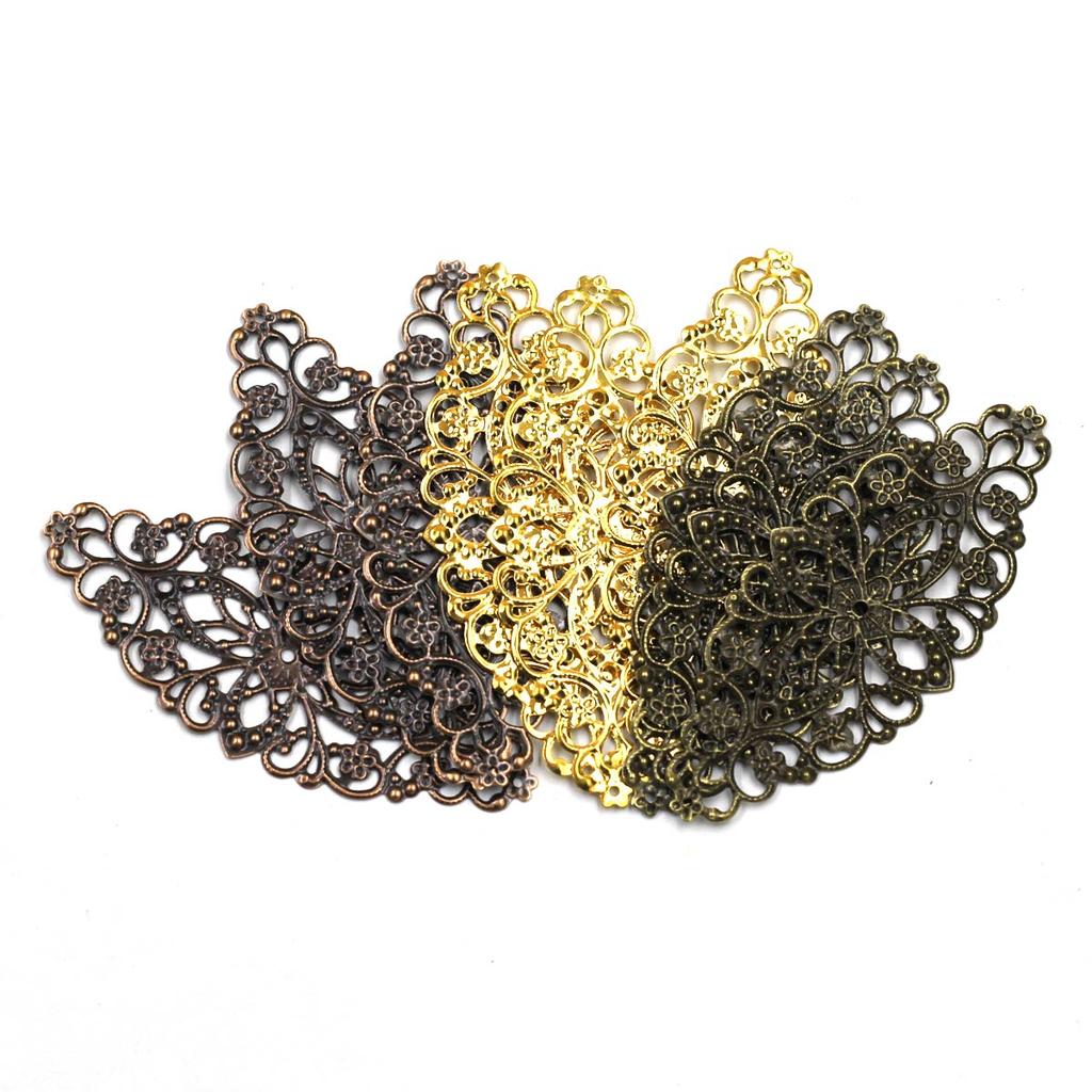 Kupfer Bronze Gold Farbe Verbinder Blumenmuster Filigran Wraps Legierung Verzierungen Bastelschmuck DIY Zubehör 80x35mm