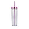 16Oz Double-Layer Plastic Straw Cup, Simple Skinny Straight Cup, Fixed Rose Gold Electroplated Lid Water Cup
