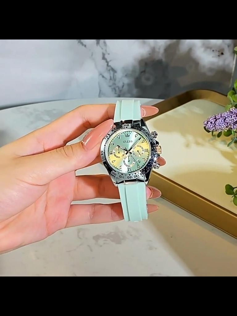 Quarzuhr für Damen Silikonarmband Datum Wasserdicht Chronograph Elegant Luxus Damen Armbanduhr