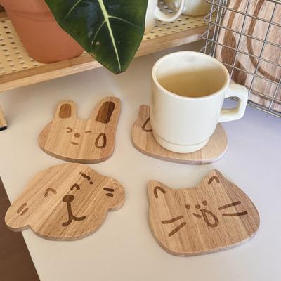 Katzenförmige Untersetzer aus Holz Wiederverwendbare Tischschutzmatten Hitzebeständig Teekanne Getränk