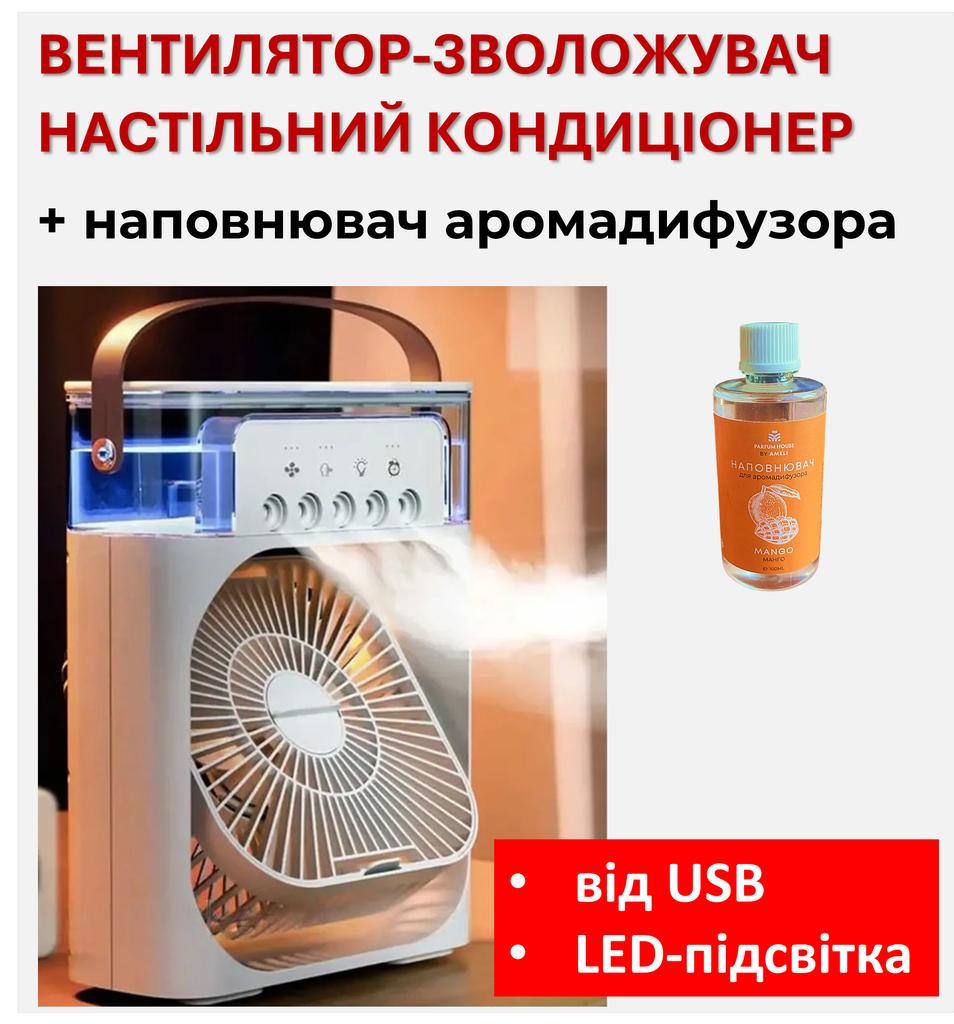 Ventilator-Luftbefeuchter Tischklimaanlage + Aromadiffusor-Aufsatz - füllen Sie Ihr Zuhause mit Kühle und angenehmem Duft