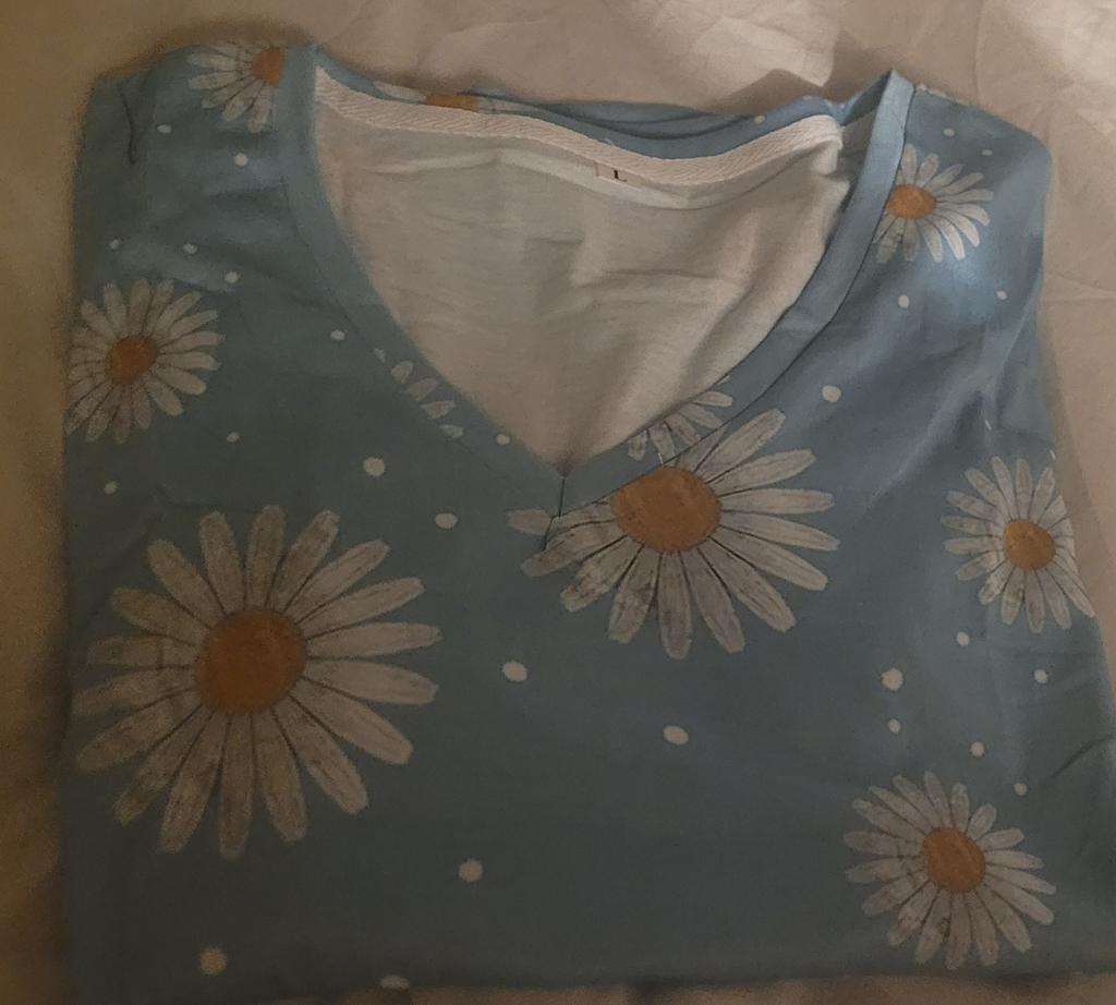 Mode Frühling Schöner Blumenprint Blusen Kurzärmlig V-Ausschnitt T-Shirts Lässig