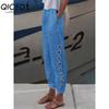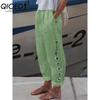 QICED Mode Beliebte Haremshose mit Blumendruck und Blumentaschen Mittelhohe Taille Hose Streetwear