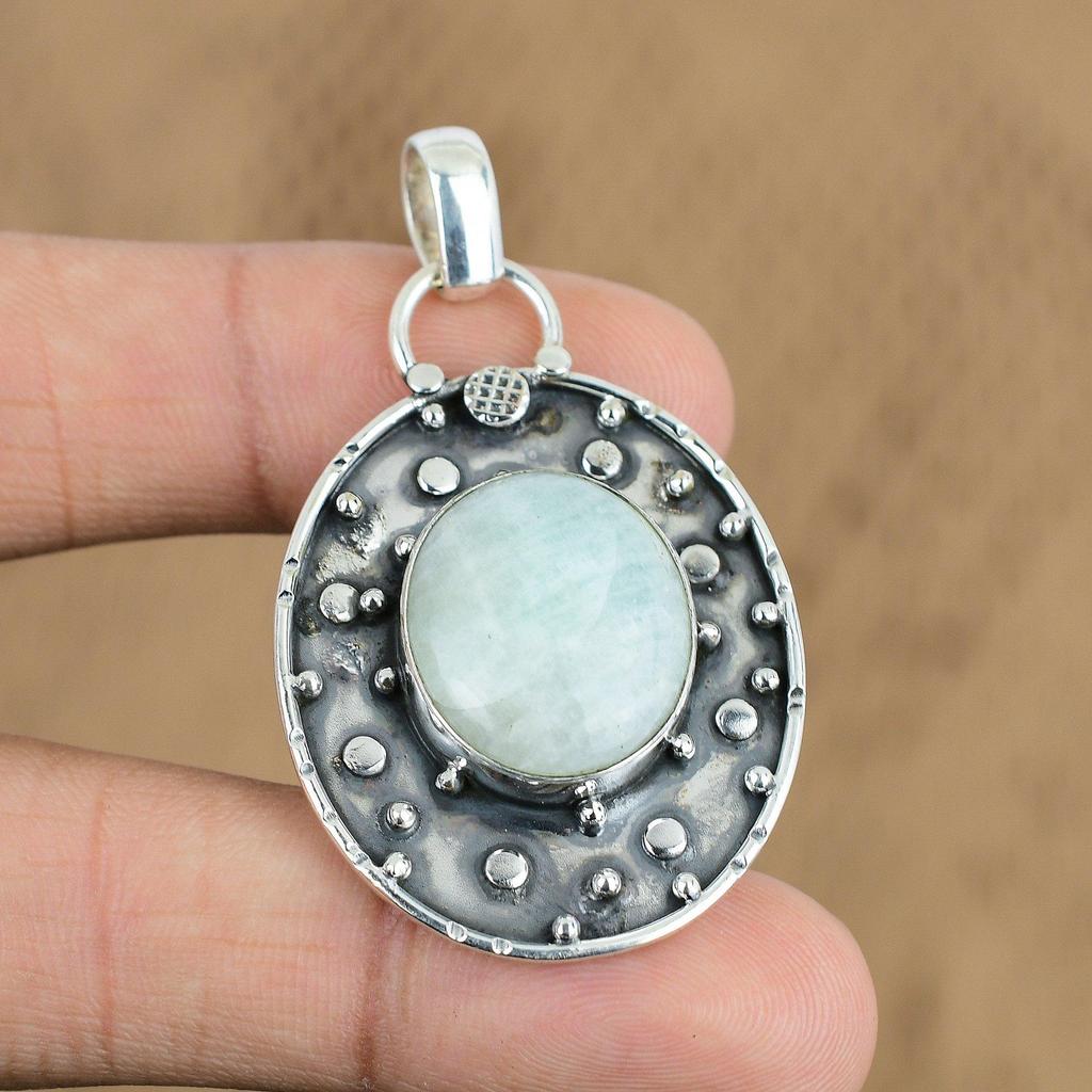 Frauentagsangebot 925 Silber Ovaler Amazonit Edelstein Herzchakra Geburtstagsanhänger