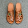 Johnature Ethnischer Stil Peeptoe-Slipper Echtes Leder Durchbrochen Atmungsaktiv Kitten Heels Damen Sandalen