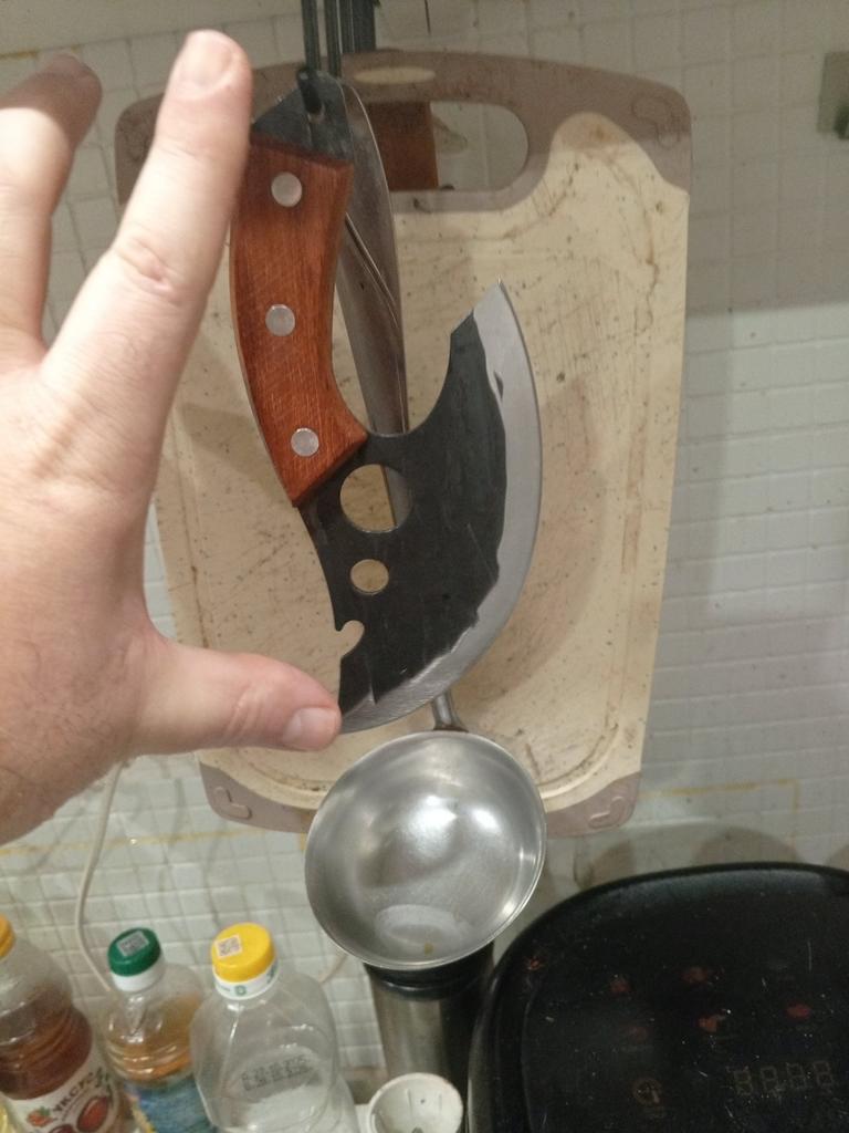 Liegt gut in der Hand. Schliff ist sauber und scharf. Der Griff könnte mit Schleifpapier nachbearbeitet werden, muss aber nicht. Der Flaschenöffner ist witzig.