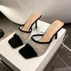 Große Damensandalen mit hohen Absätzen, dünnen Absätzen, spitzen Strasssteinen, die nicht müde machen, atmungsaktiver Zehenbereich, einfache Sandalen