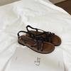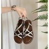 Neue gewebte Sandalen mit flachem Boden für Damen 2025 Sommer neue Oberbekleidung weiche Sohle mit lässigem Strand-Cool