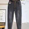Frühling und Sommer Extra große Stretch-Jeans für Damen Lockere, schmale, halbelastische Haremshose mit hoher Taille