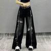 Übergröße Amerikanische Street Hip-Hop Weitbeinjeans für Damen - Nische Raw-Edge Patchwork Distressed Drapey Bodenlange Hose