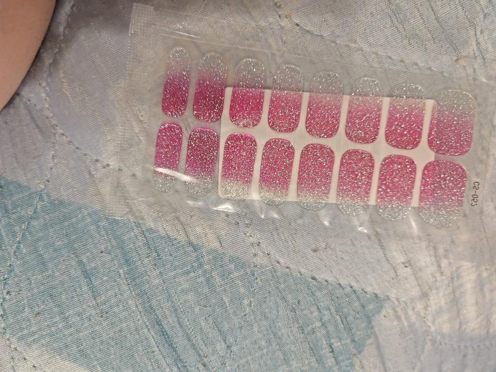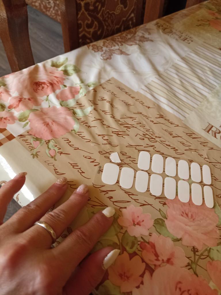 Die Aufkleber haben mir nicht gepasst, da sie für dünne Nägel gedacht sind, aber meine sind breit und an den Seiten bleiben sie unbedeckt.