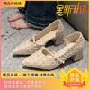 Spitze Einzel-Schuhe Damen Dicke Ferse Frühling Neu Perle Vielseitig Leichte Mund Sanfte Seite Leer High Heels