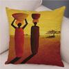 Afrikanische Frau Weicher Plüsch Kissenbezug für Sofa Heimdeko Orange Abstraktes Gemälde Kissenbezug Afrika Leben Kollektion Kissenbezug