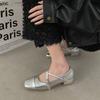 Silberne Einzelne Schuhe Damen 2025 Frühling neu vielseitig leichter Mund Retro Mary Jane Schuhe