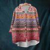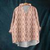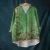 Damen Locker Rüschen Floralprint Stehkragen Langarm Baumwolle und Leinen Top