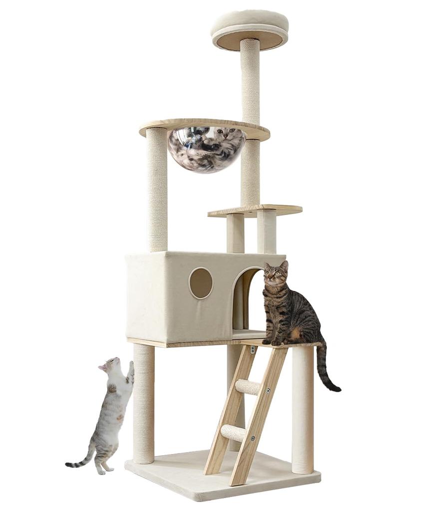 wooden cat tower with new no spacious top scratching cat tower for indoor popular relieves lack of mini tower Multi-level spaceship, material,
