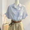 Sommerliches gestreiftes Freizeitshirt Vintage französisches Design Lockere Passform Kurzarm-Oberteil