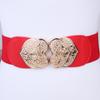 Cooler Gürtel Damen Retro Graviertes Schnallenpaar Taillensiegel Kleiderdekoration Elastischer Elastischer Breiter Gürtel