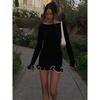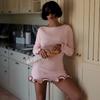 Mode Damen Strick Minikleid Rüschen Sommer Hohe Taille Elegante Schlanke Party Kleid Patchwork Strickwaren Pullover Weibliche Kleid