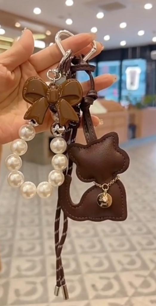 Yogodlns Elegante Katzenform PU-Leder Handtaschenanhänger Künstlerisches Seil Damen Maximalistische Tasche Rucksackanhänger Ornament
