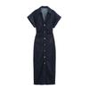 Frühlingsneues Denim-MIDI-Kleid der Serie 1975 mit seitlichem Reversreißverschluss, modische, faltige Taille, schlankes, elegantes Kleid