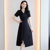 Sommer V-Ausschnitt Elegant Mode Falten Taille Kleid Dame Kurzarm Temperament Abendparty Robe Frauen Einfarbig Schlitz Vestidos