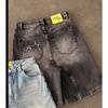 RogueWave Retro Letter Denimshorts Y2K Herren Harajuku Hip Hop Buchstabenstickerei Retro Blau Baggy Shorts Überkniehose Lässige Shorts