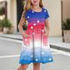 Kinder Rundhals Kurzarm Prinzessinnenkleid Modisch Und Lässig Tasche Mädchen Unabhängigkeitstag Kleid