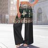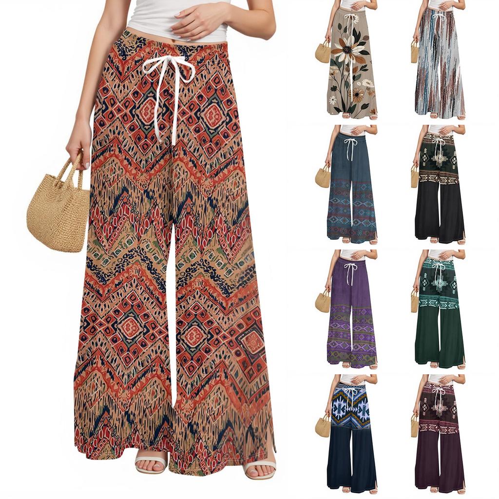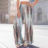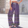 Damen Bedruckte Weitbeinige Hosen mit Taschen Hohe Taille Kordelzug Lockere Freizeit-Hosen