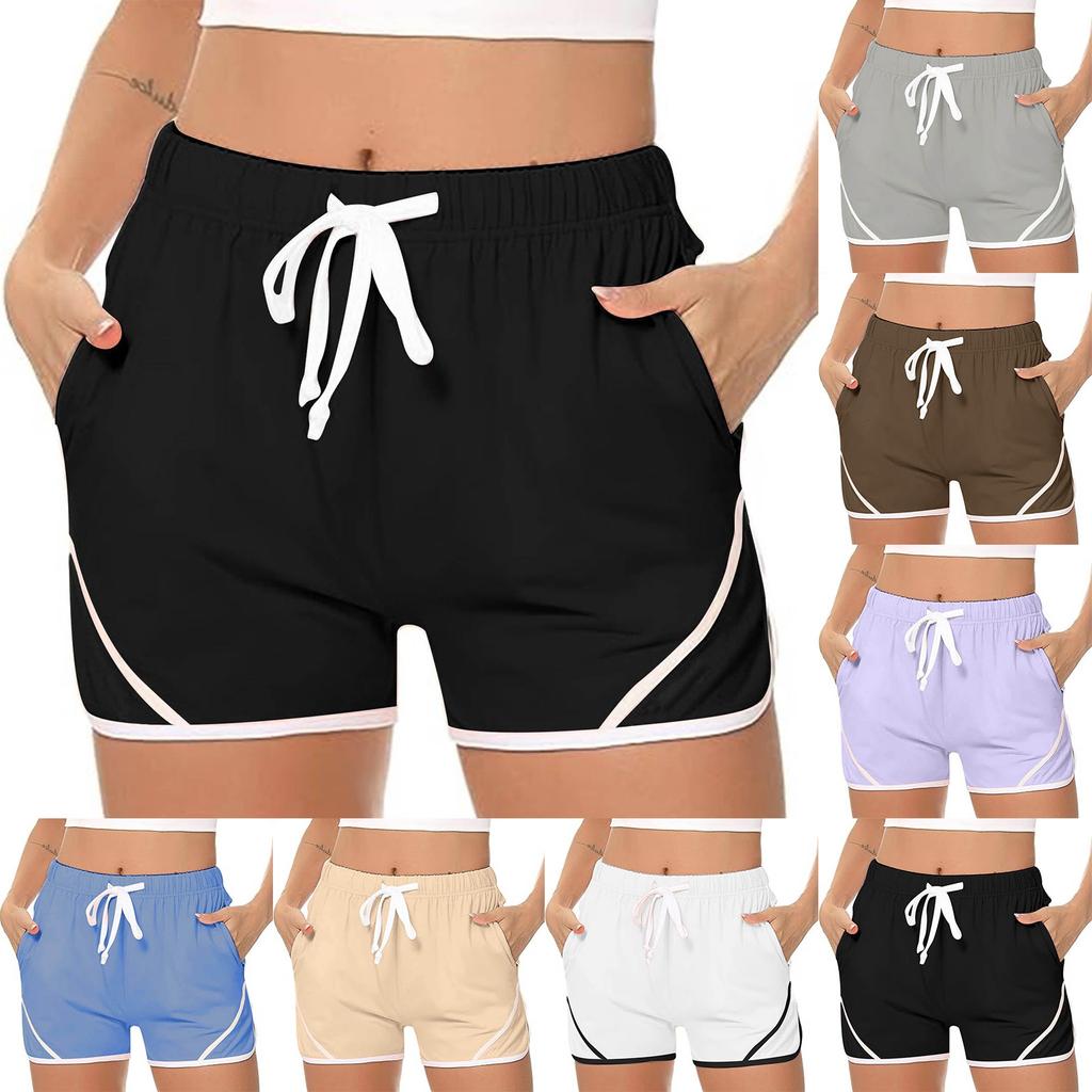 Laufshorts für Damen Sommer Casual Workout Fitnessstudio Yoga Sportlich Einfarbig Shorts mit Taschen