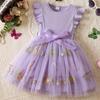 Mädchen Mode Blume Stickerei Mesh Schleife Süße Kinder Prinzessin Kleid Puffröcke