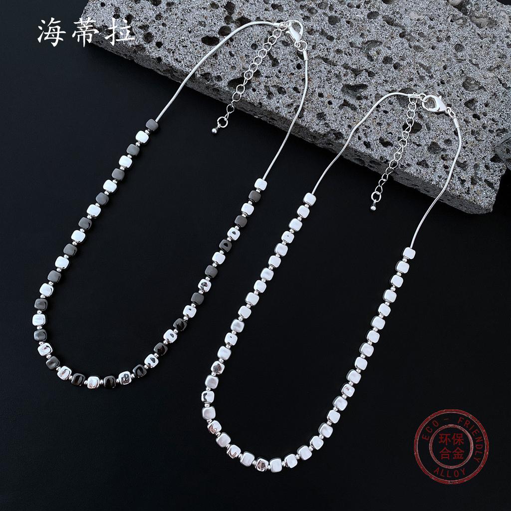 Geometrische kleine quadratische Legierungskette, Damen einfache matte helle Spleißung kleine Zuckerwürfelkette