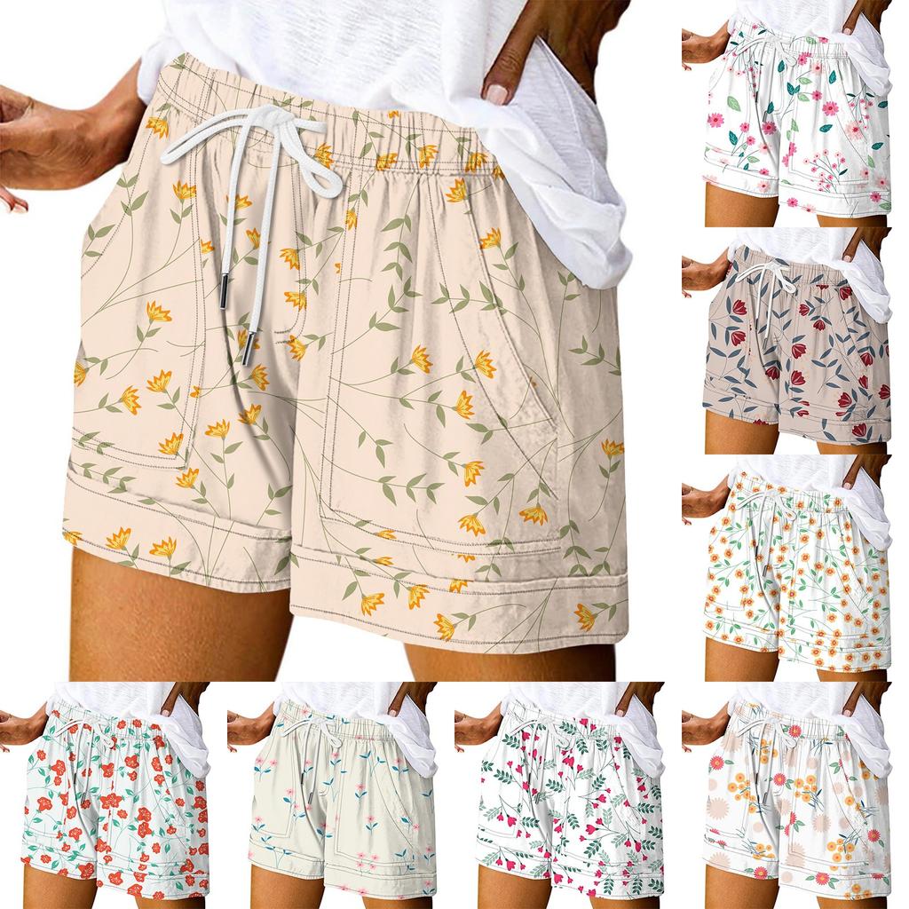 Damen Casual Sommer Elastische Strandshorts Print Casual Shorts