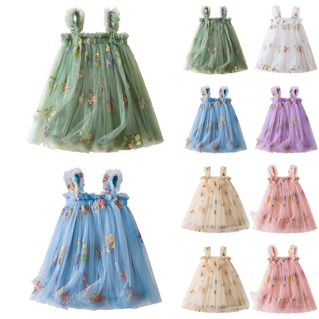 Mädchen Mode Niedlich Prinzessin Kleid Bunte Blumenstickerei Kleider