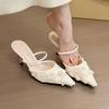 Rosa Nebelrose zarte spitze Rose Tasche Kopf dünner Absatz Halbschuhe Damen Frühling neu Mesh Einzelne Schuhe