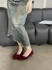 Mädchen Schleife High Heels Damen Dünne Absätze Herbst und Winter Neu Spitz Temperament Schwarz Satin Einzelne Schuhe