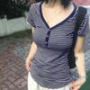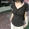 Koreanische Mode Gestreiftes V-Ausschnitt mit Knöpfen Schlankmachende T-Shirts Damen Sommer Kurzarm Oberteil Tees Y2K Ästhetik Neu