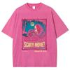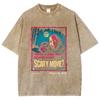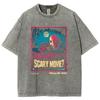 Horrorfilm-Stil Schädel-Print Damen T-Shirt Übergroß Gewaschen Locker Kurzarm Baumwolle Hohe Qualität Studenten-Tees Unisex Nische