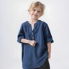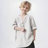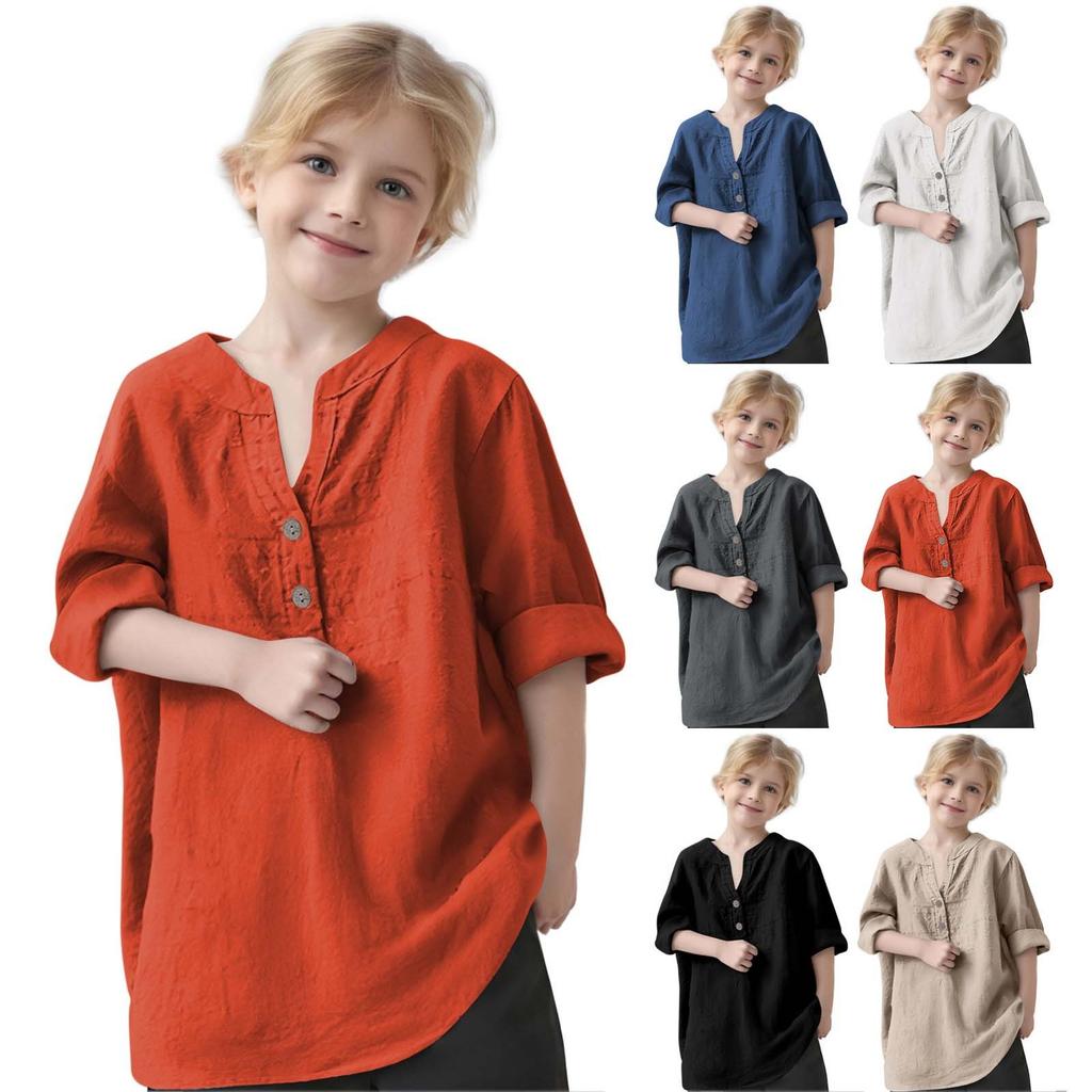 Kinder Baumwolle Hanf Stehkragen Aufrollbar Langarm Rundhals T-Shirt Unifarben Alltäglich Lässiges Hemd