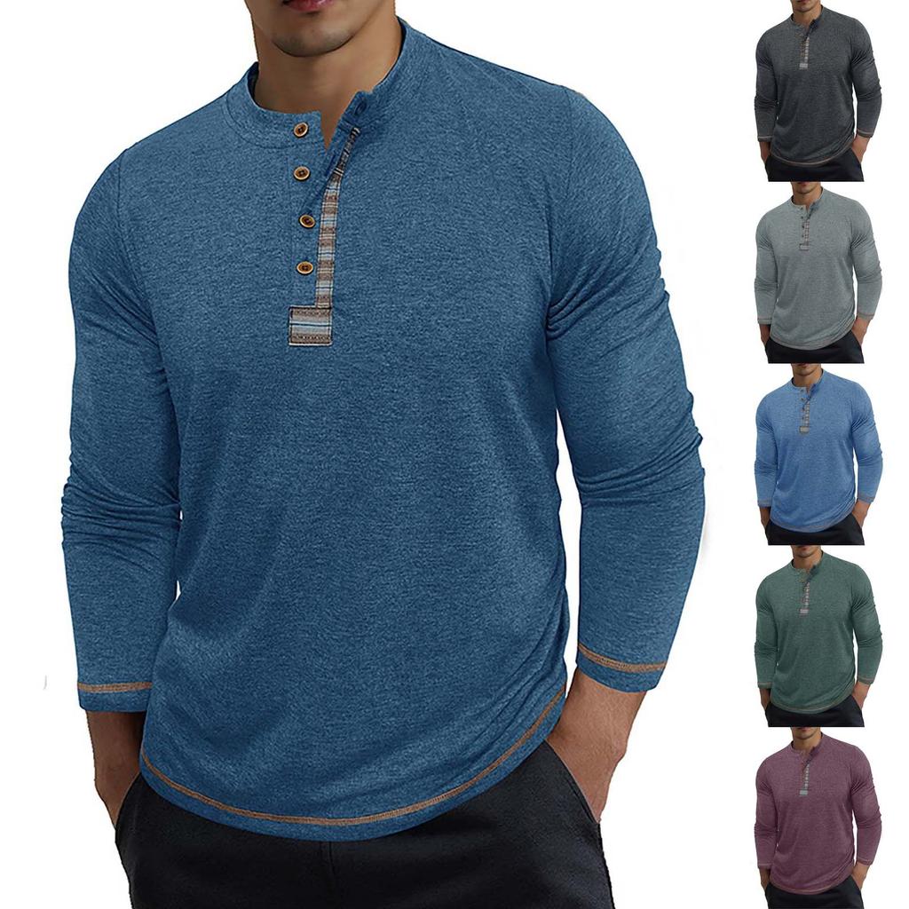 Herren Frühling Und Einfarbiges T-Shirt Revers 3-Knopf Offene Knopfleiste Knopf Langarm Oberteil